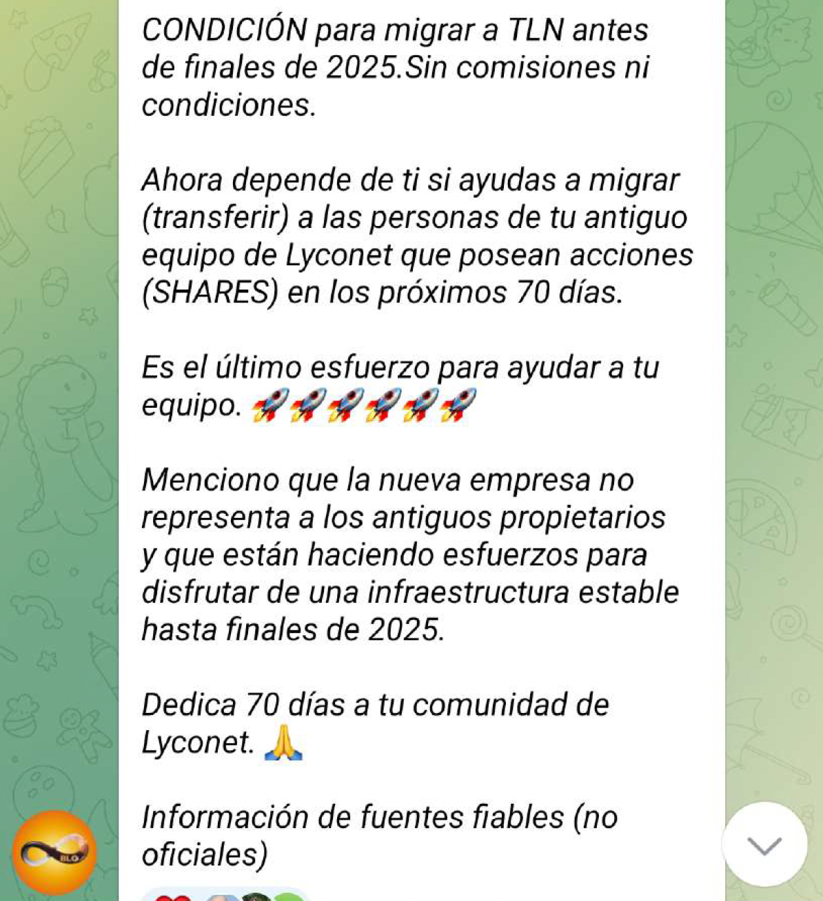Es Ionica G. líder de origen Rumano, quien actúa como mensajero, explicando cómo deben ayudar a su equipo a “migrar sus acciones”. Pide “un último esfuerzo para ayudar a tu equipo” y recalca que la información proviene de una fuente “fiable”, aunque no oficial.